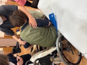 まず初めに、スライディングシートを使った移動を教わりました。